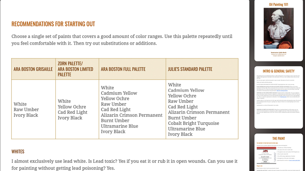 A pdf with clickable links and basic info about oil painting.